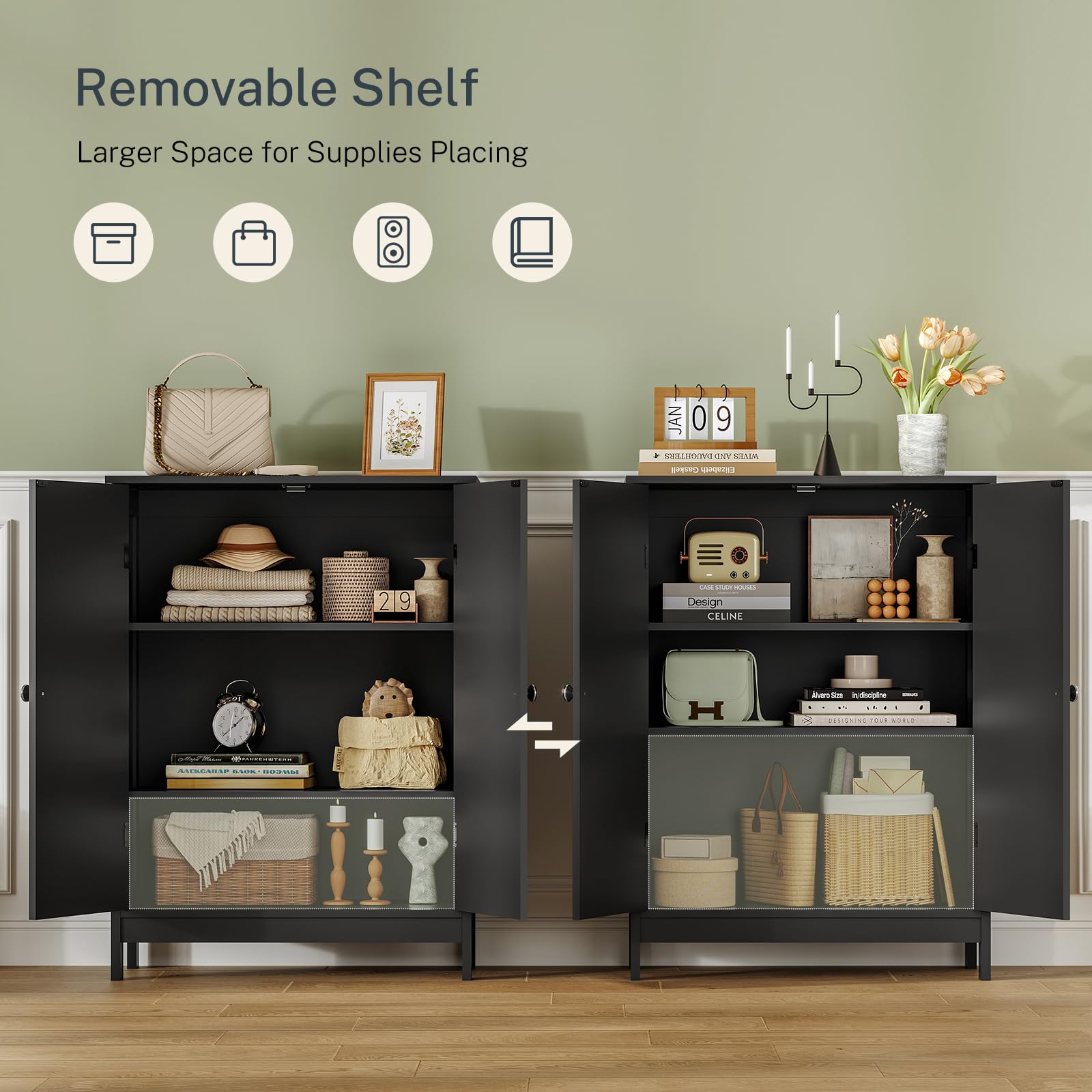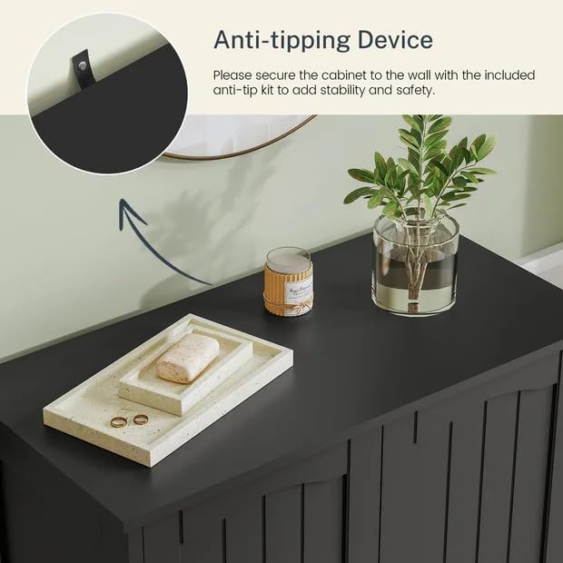 IWELL Black Bathroom Cabinet with 2 Doors, 3 Heights Available, Free Standing Floor Storage Cabinet for Bathroom, Living Room, Kitchen, Black
