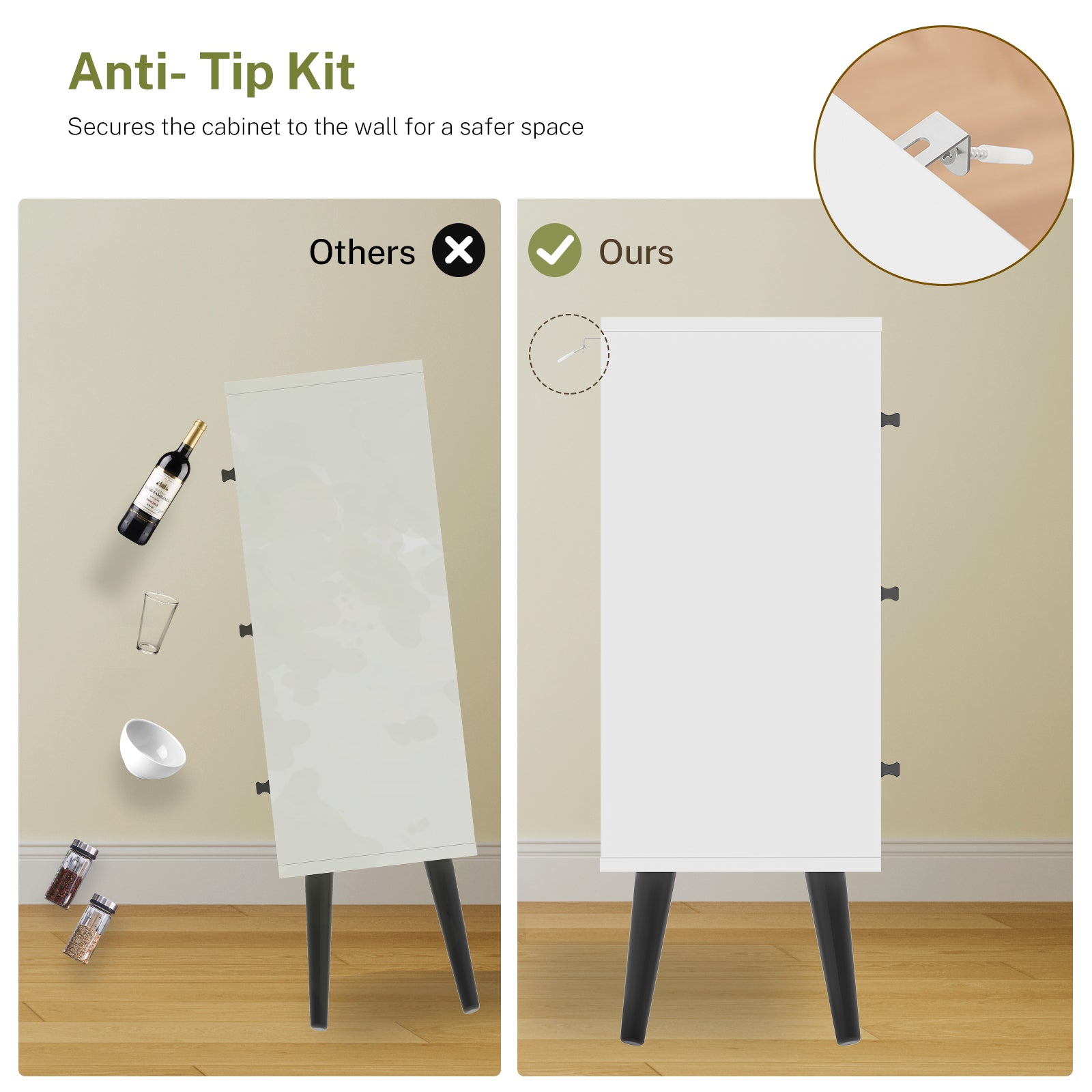 - ⭐【More Stable Than It Look】Don't need worry wobbling or collapsing. Our storage cabinet is made of premium MDF (P2 grade) and solid wood leg which promises a long service life and boasts great stability(Can support weight 150lbs). Environmentally friendly surface ensures no harm and odorless.We attach anti-toppling fittings helps secure it to the wall for a safer living space.