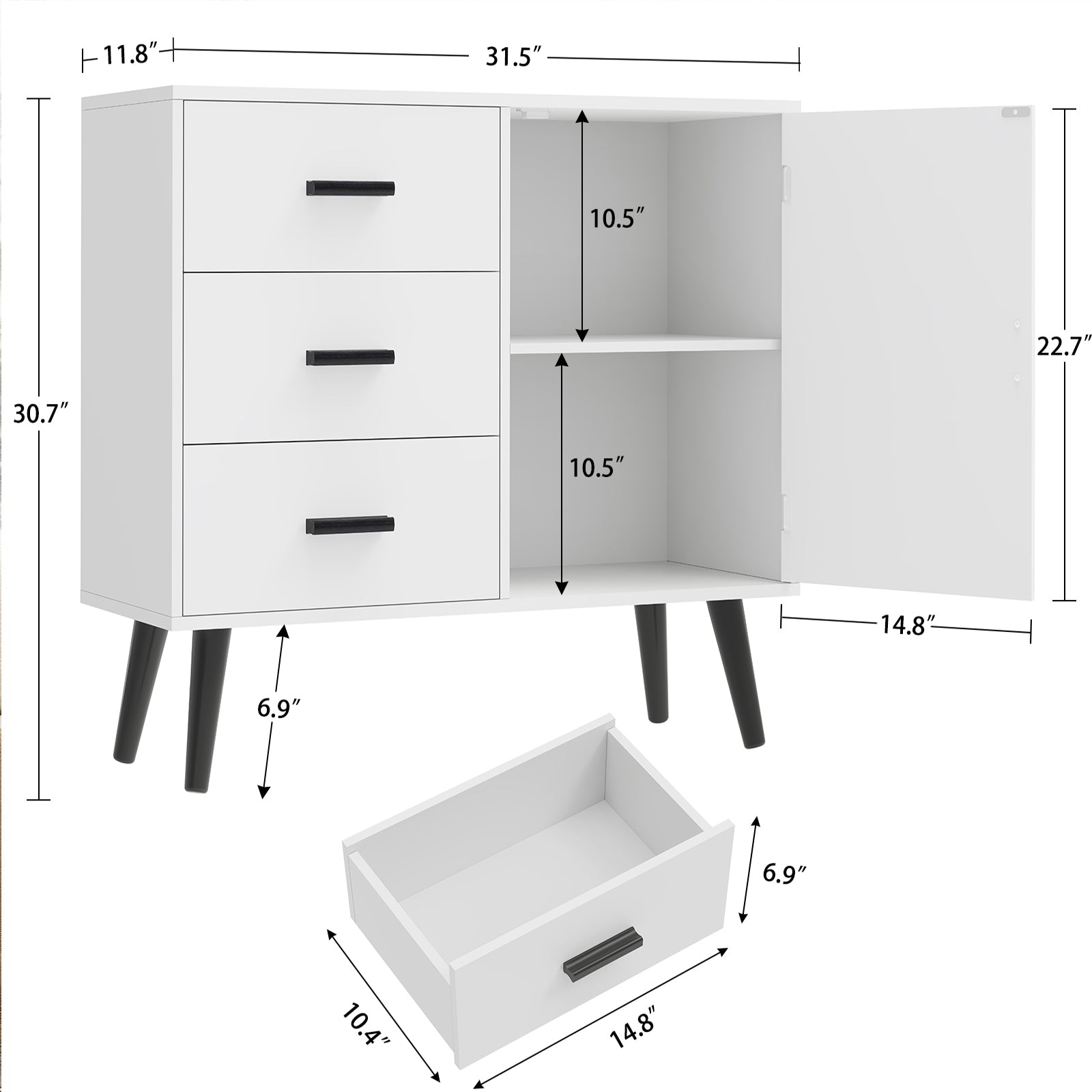 - ⭐【Tucking Away Room Clutter】Looking for extra storage for your home? Try this cabinet, measurements 31.5"L x 11.8"W x 30.7"H, wider than normal storage cabinet. 3 categorised drawers can keep stuff organized and items of varying sizes go to the adjustable shelf (3 heights available) behind the door, while keeping items out of sight— the perfect solution for keeping your living space organized and clutter-free.