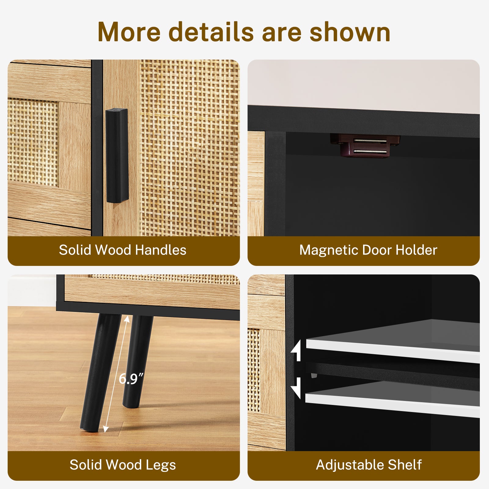 - ⭐【More Stable Than It Look】Our rattan cabinet is made of premium MDF (P2 grade) and solid wood leg which promises a long service life and boasts great stability(Can support weight 150lbs). Environmentally friendly surface ensures no harm and odorless. We attach anti-toppling fittings helps secure it to the wall for a safer living space.